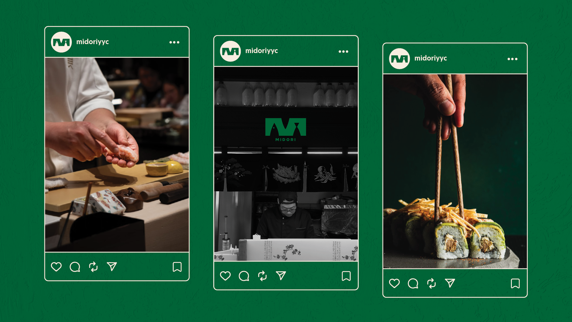 Midori, meaning 'Green' in Japanese, is a cozy neighborhood gem beloved by Calgary locals. Our studio reimagined this heritage brand, evolving beyond traditional Japanese restaurant aesthetics to reveal an identity defined by clarity and freshness. The goal was to create a modern atmosphere where the visual brand finally aligns with the high quality of the dining experience.